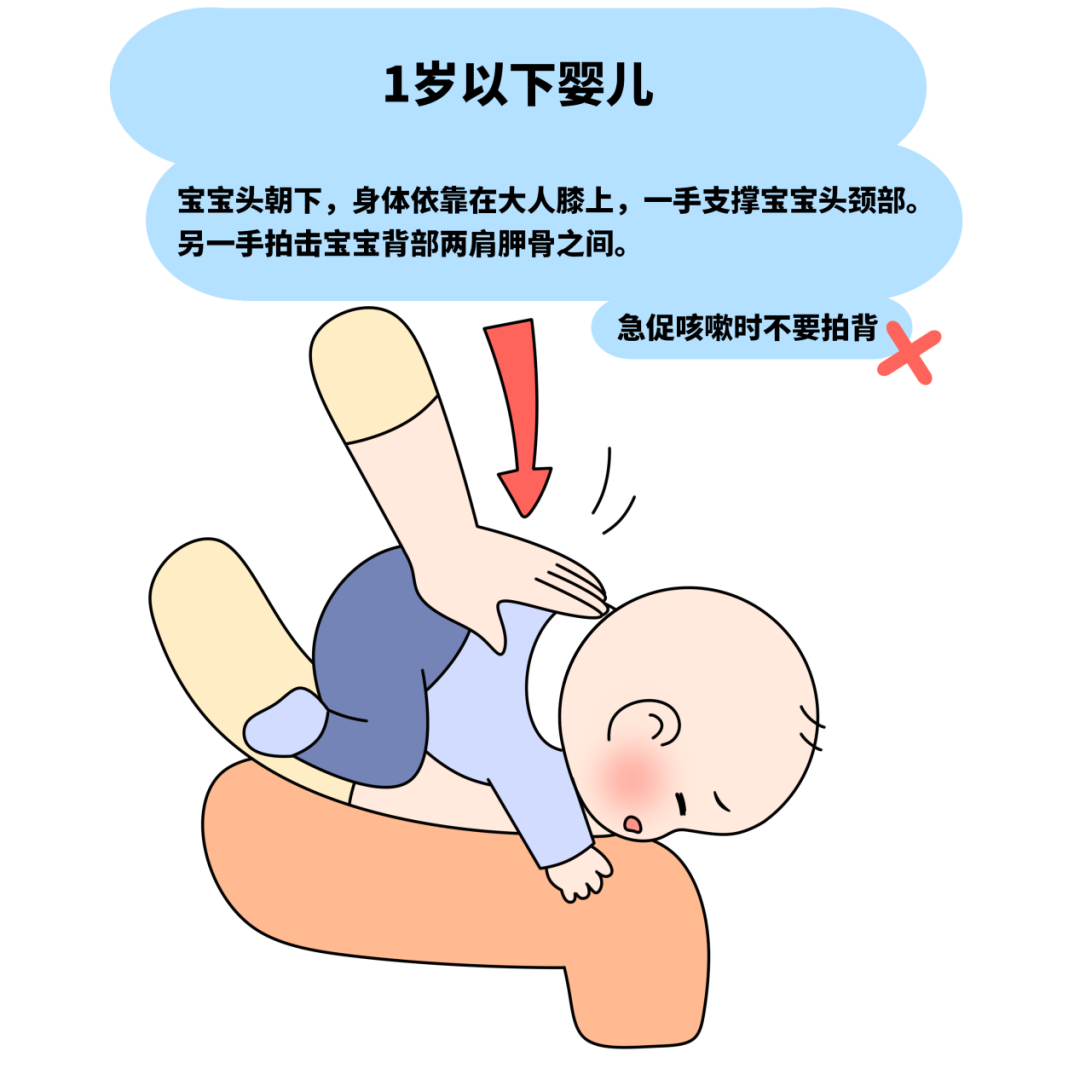 适用于1岁以下的儿童。作用是通过拍打背部或按压胸部,刺激患儿咳嗽,增加胸腹腔压力,促使异物排出。