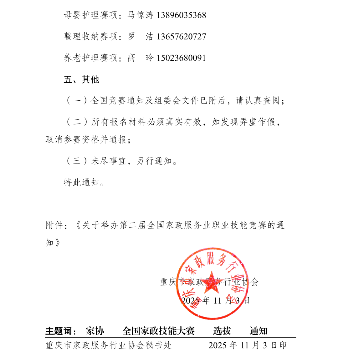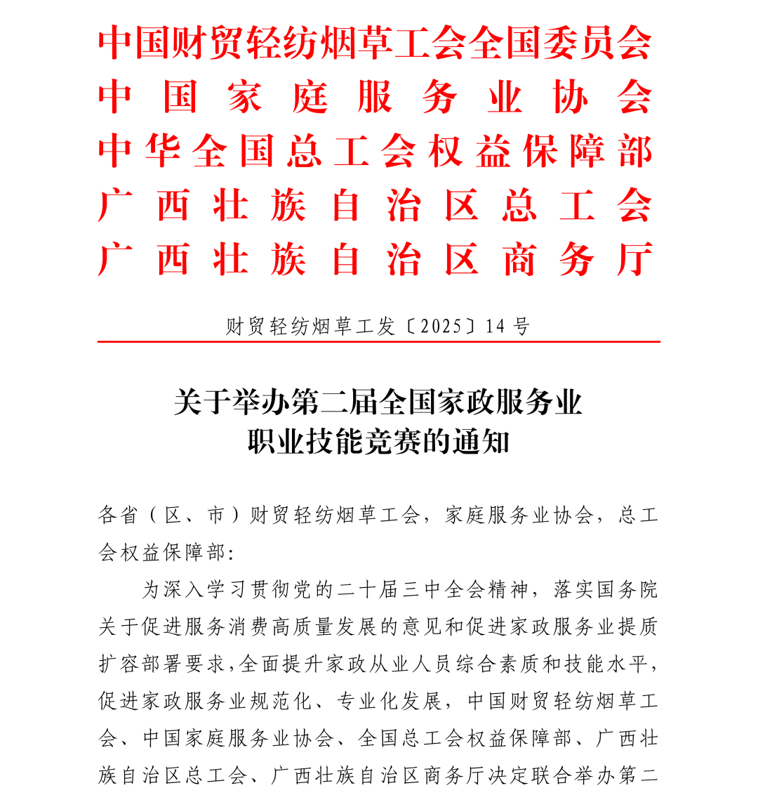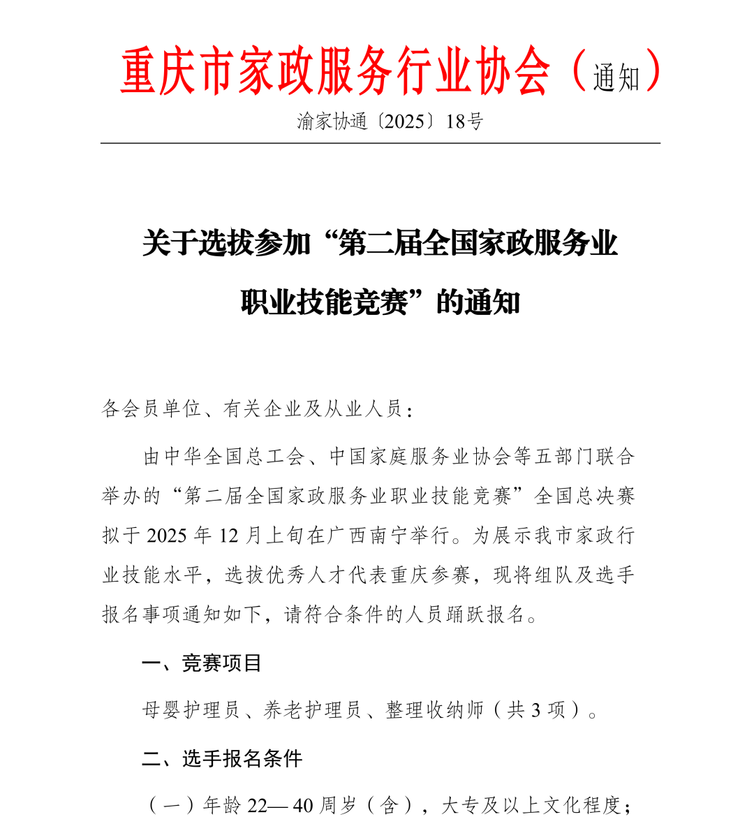 【通知】关于选拔参加“第二届全国家政服务业职业技能竞赛”的通知