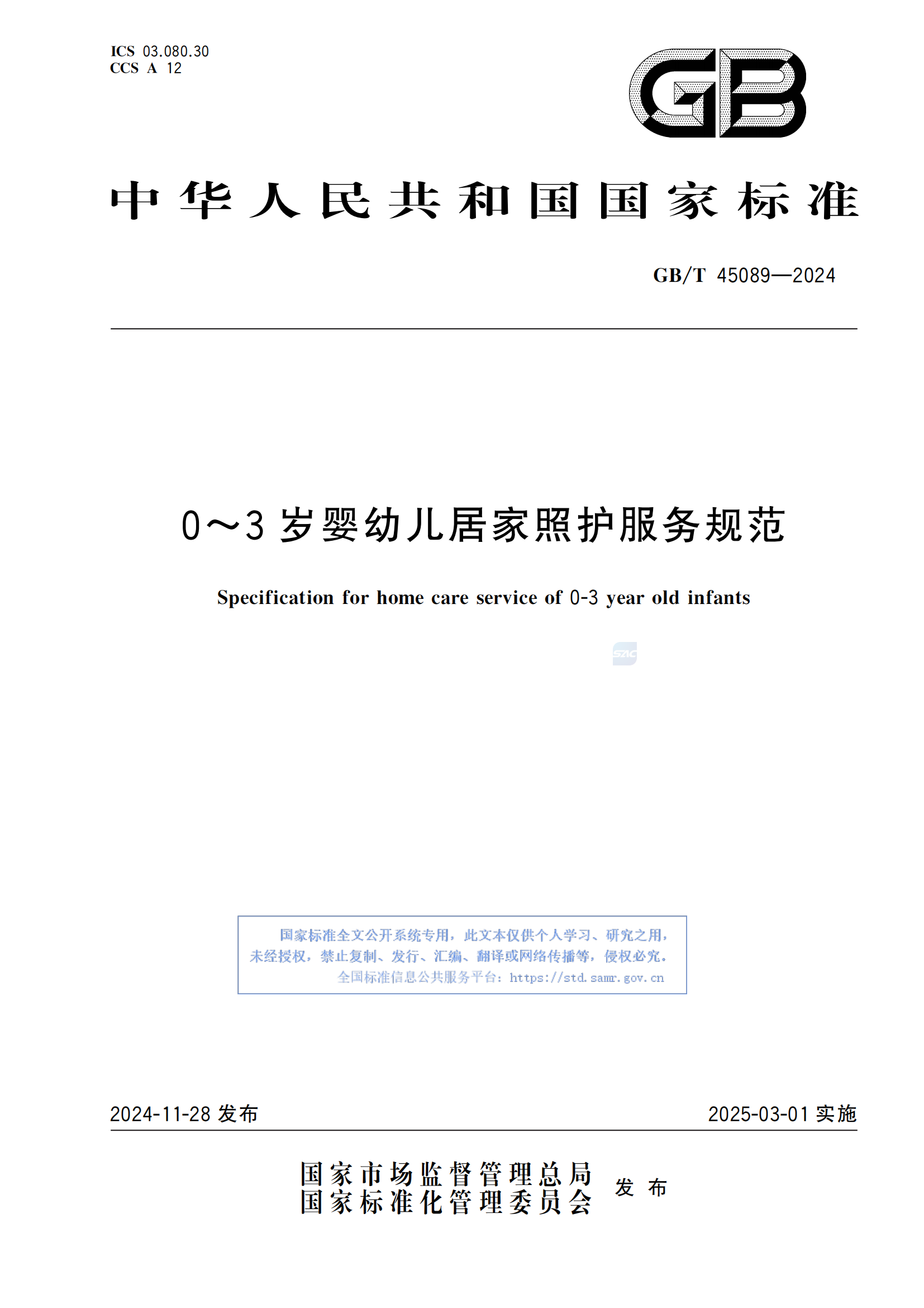【政策】新国标:《0~3岁婴幼儿居家照护服务规范》